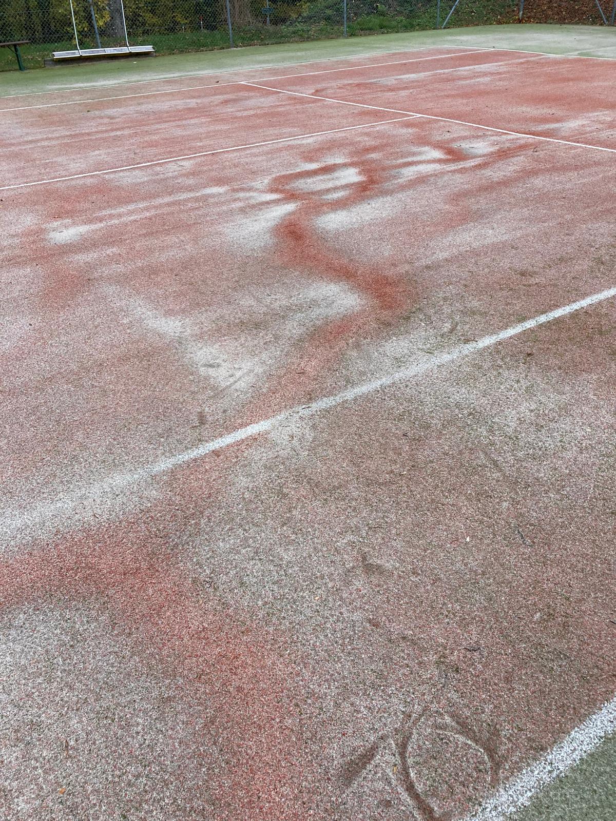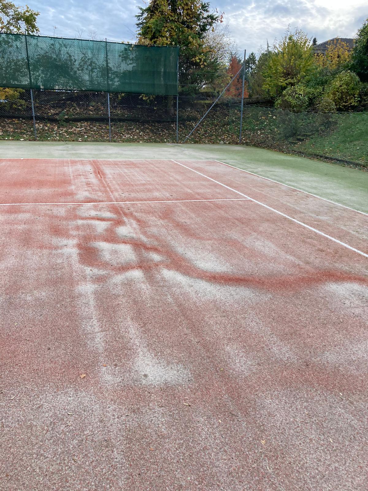 Depuis le printemps 2025, des racines ont évoluées sous le court de Tennis et cela a crée des bosses à certains endroits.